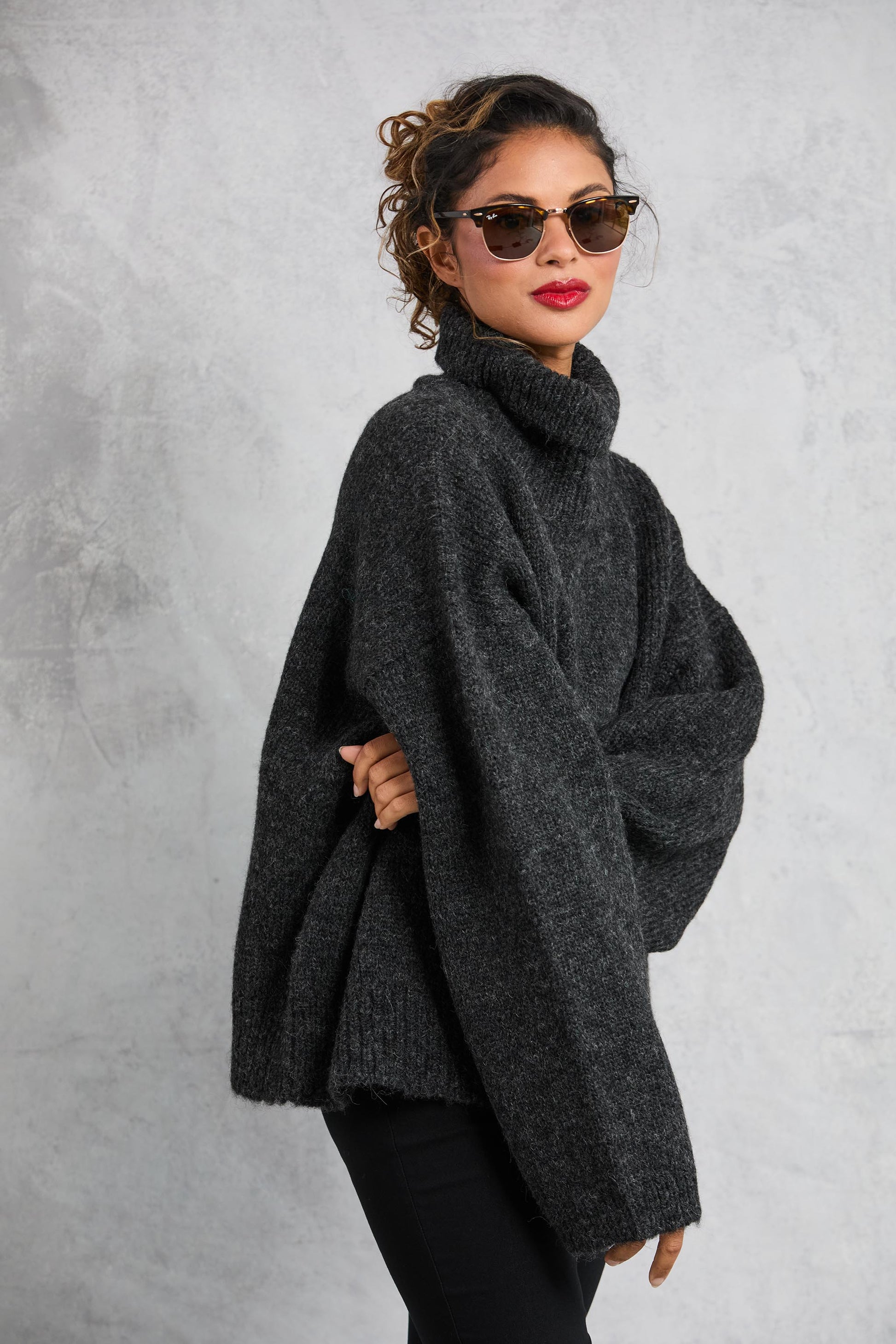 Chunky high-neck sweater knitted with lofty textured yarn. A forever classic sweater, cozy for any months during Fall and Winter.