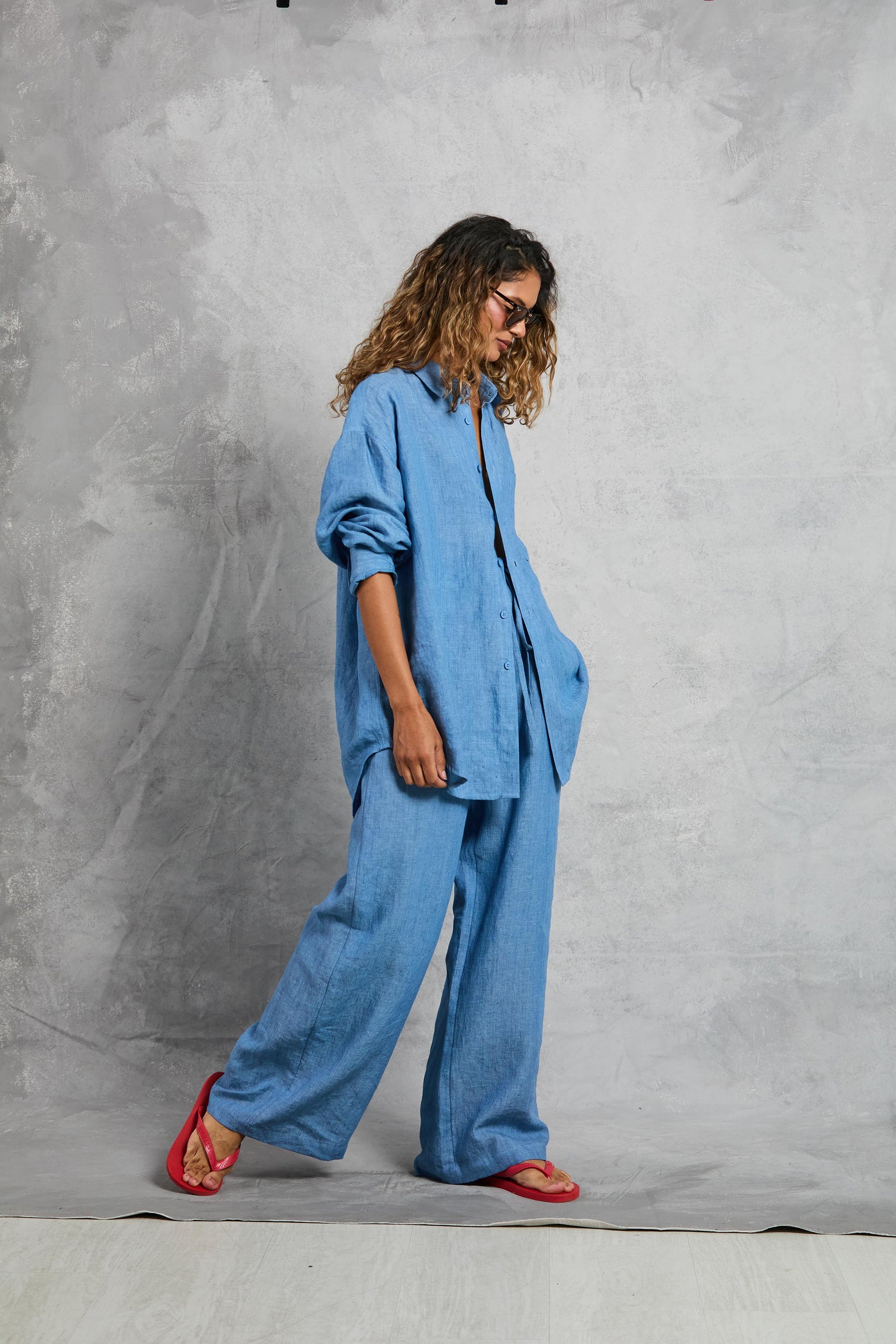 Linen / Cotton yarn-dyed Chambray. Woven, washed and stitched in India.
